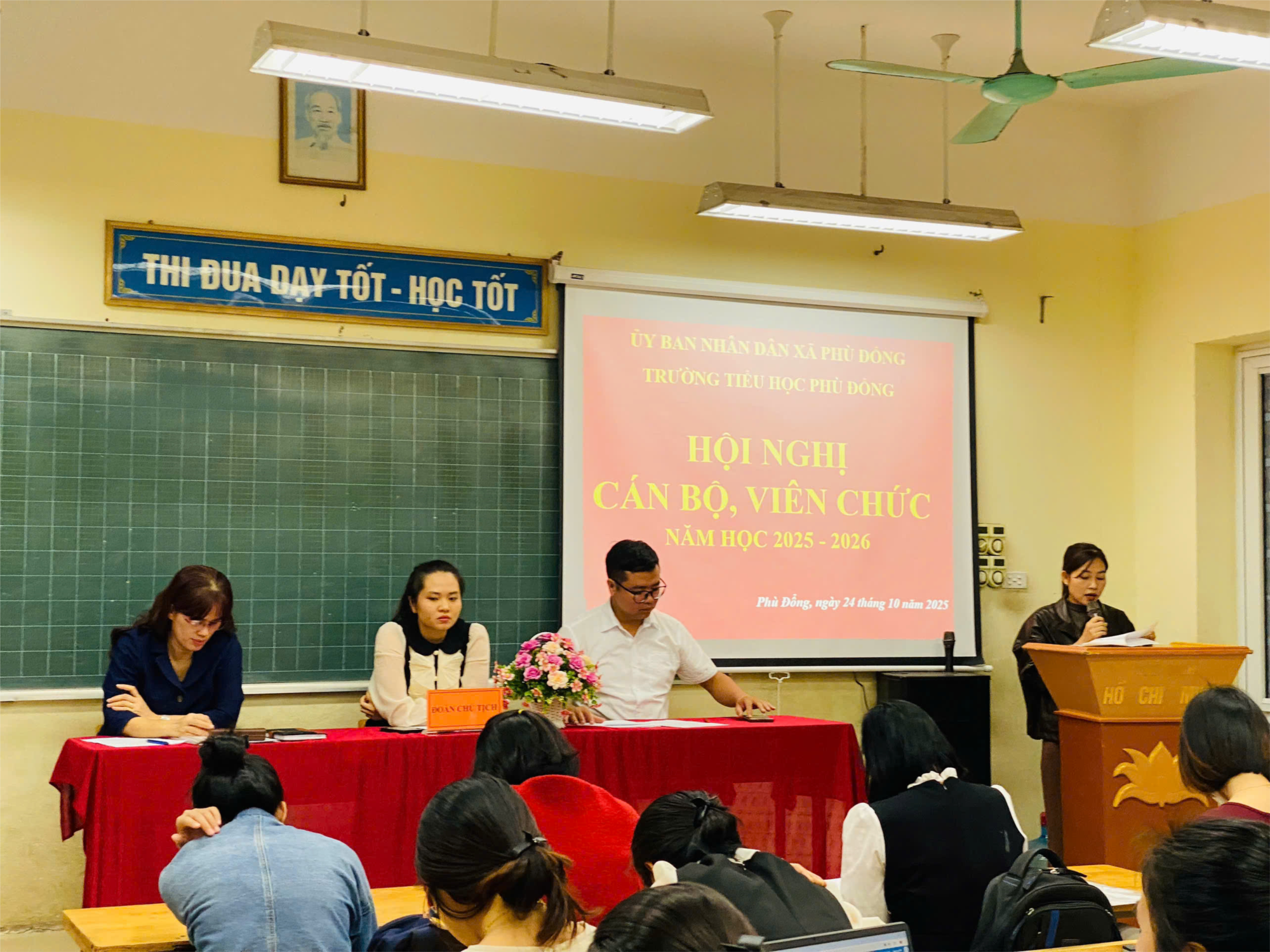 Hôm nay, ngày 24/10/2025, Trường Tiểu học Phù Đổng đã long trọng tổ chức Hội nghị viên chức, người lao động năm học 2025 – 2026 với sự tham dự của: