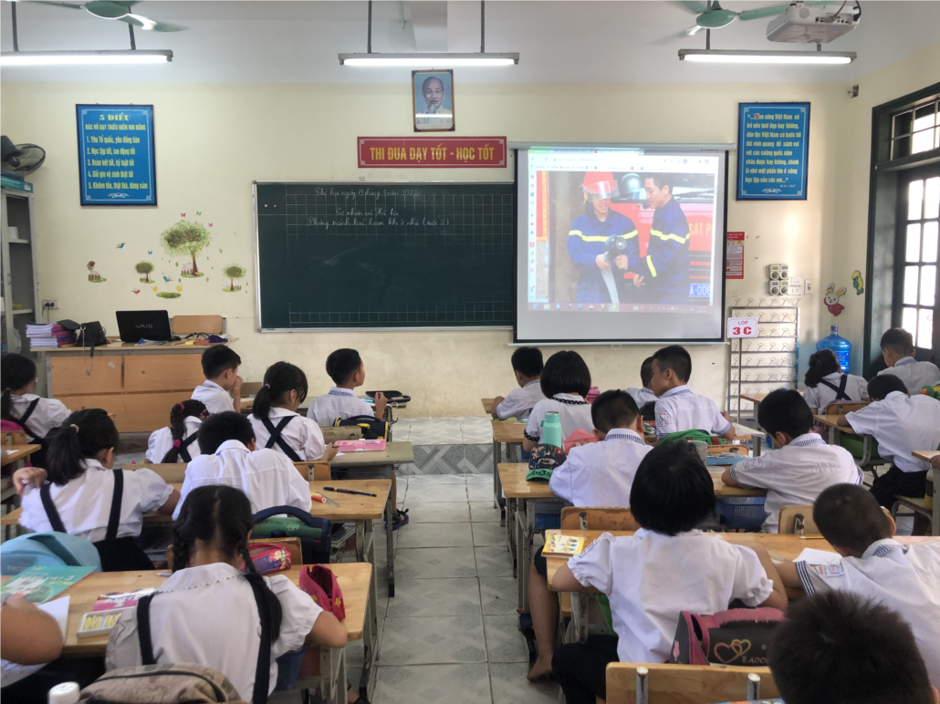 Khi tham gia hoạt động này, các em học sinh rất thích và nghiêm túc. Các em được nhận biết về màu áo của người lính cứu hỏa Việt Nam và cố gắng thể hiện màu áo ấy trên chính bức tranh của mình.