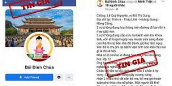 Mới đây, Trung tâm xử lý tin giả Việt Nam (thuộc Cục Phát thanh Truyền hình và Thông tin điện tử, Bộ Thông tin và Truyền thông) cho biết trên mạng xã hội Facebook xuất hiện tài khoản “Bái Đính Chùa” sử dụng ảnh đại diện giống và dễ gây nhầm lẫn với tài khoản mạng xã hội của chùa Bái Đính (đã có tích xanh chính chủ).