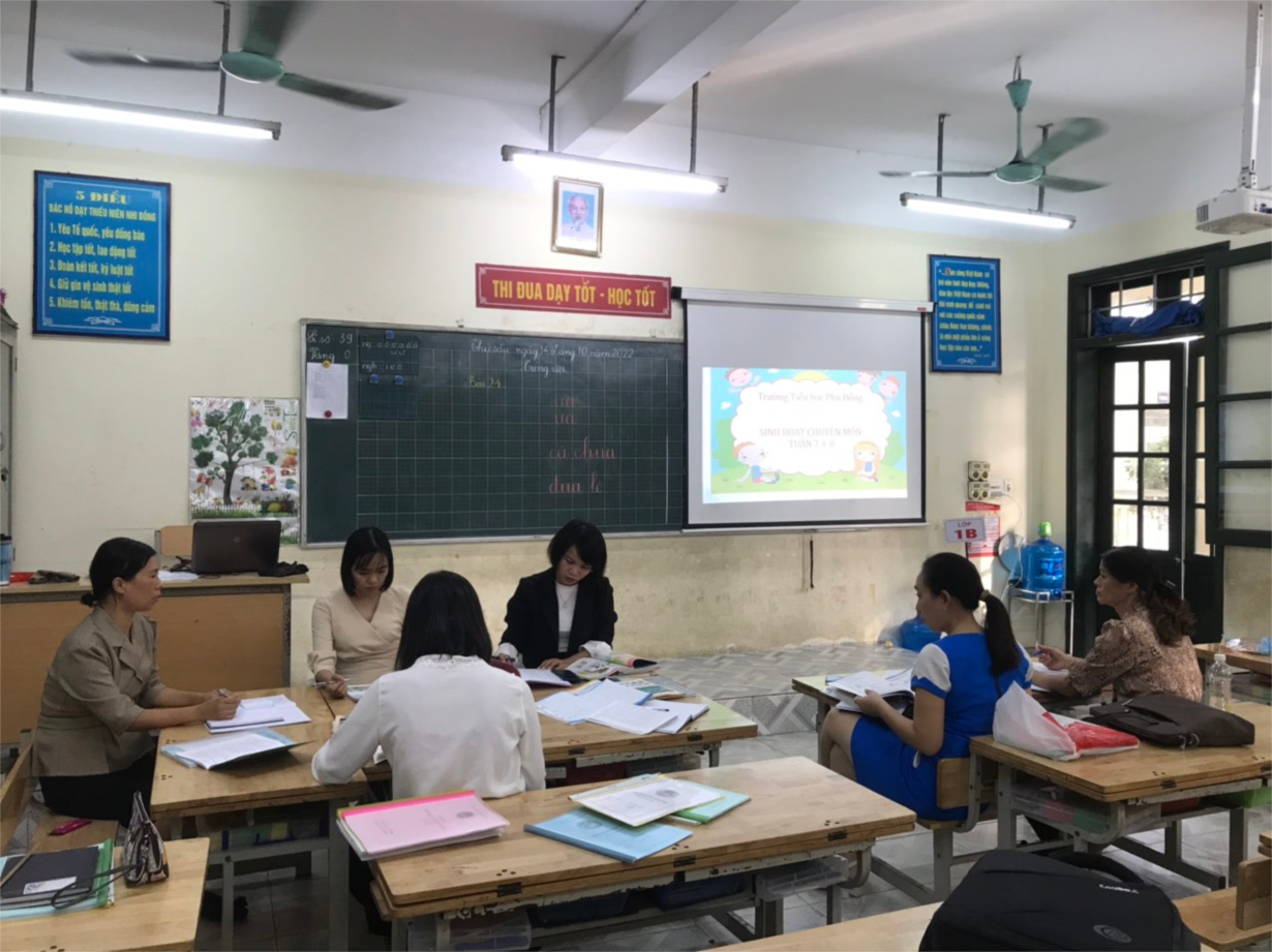 Bên cạnh những tiết dự giờ đột xuất, các cô giáo tổ Một còn tích cực trau dồi trình độ chuyên môn nghiệp vụ, thực hiện các chuyên đề cấp tổ để học hỏi bạn bè, đồng nghiệp. Ngày 14/10, cả tổ đã cùng nhau xây dựng tiết chuyên đề Sinh hoạt tổ nhóm chuyên môn. Tiết chuyên đề mang đến nhiều điều bổ ích và góp phần nâng cao chuyên môn cho giáo viên.